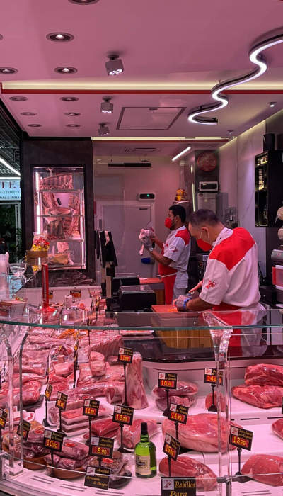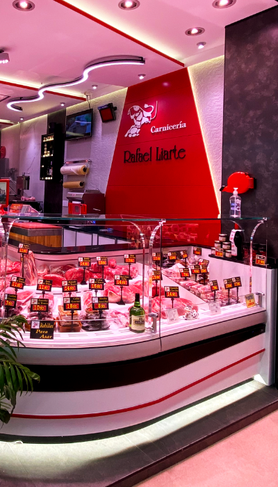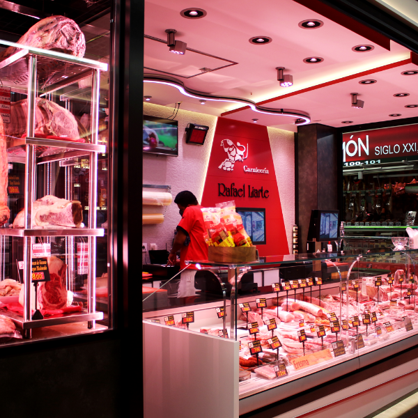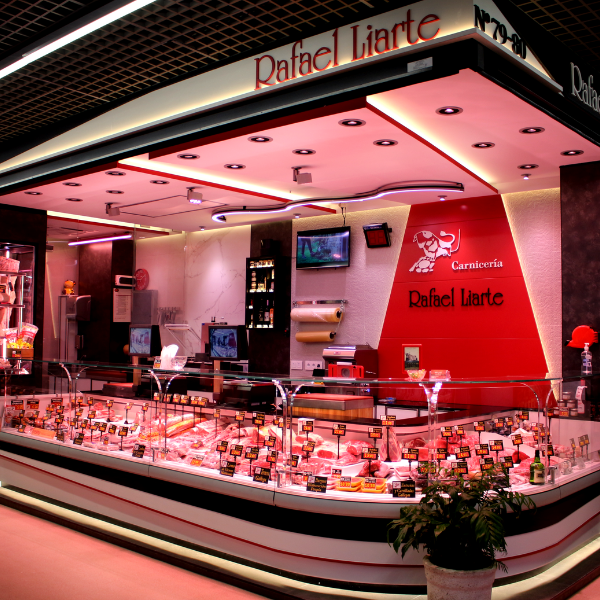 La Boucherie Rafael Liarte est située dans le mercado (marché) de Sta. María de la Cabeza à Madrid, ce commerce a choisi d’améliorer l’aspect de son établissement en effectuant un changement dans son image et dans l’éclairage de sa boucherie avec Luzco Éclairage. Chez Luzco, nous réalisons un conseil en éclairage totalement personnalisé. Dans ces consultations, nous étudions en détail l’établissement commercial et nous proposons la meilleure solution d’éclairage pour le commerce, en pouvant réaliser une réforme partielle ou intégrale de l’éclairage d’une boucherie.